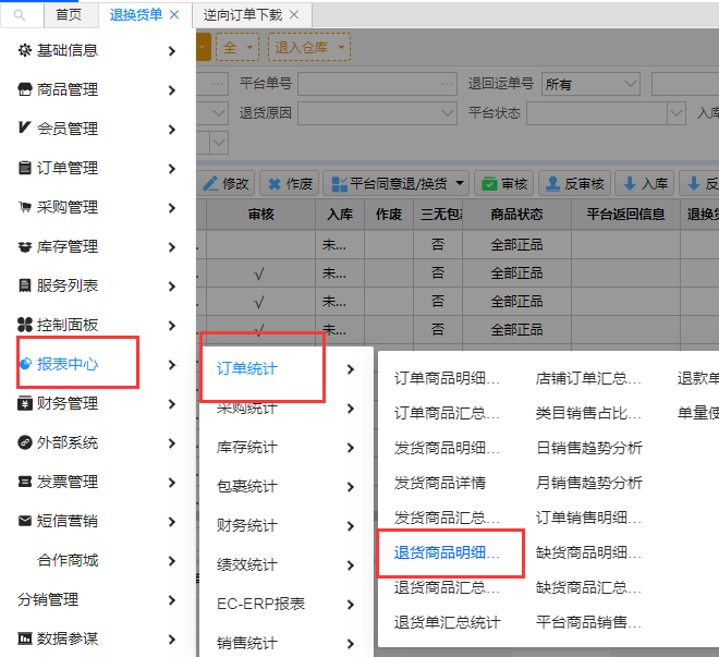 1,如何下载退换货页的未入库的退换货单。发送给对方售后。(可设置每周定期生成表格 发送各外仓)