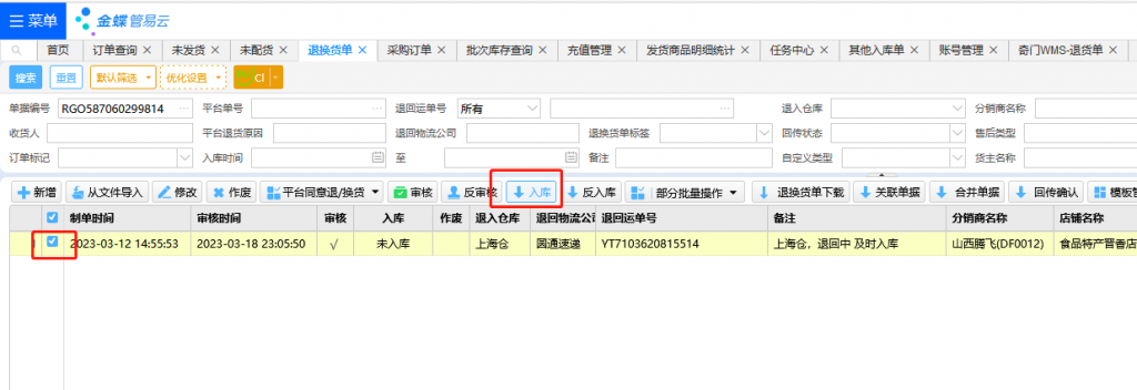 [异常]外仓退换货完成,管易云退换货 失败 Posted on 2023-05-272023-05-27 by 蛋蛋 解决办法:停止配货,去除外仓标识,外部系统-奇门WMS-基本信息配置,临时停用参数,再点入库 001 联系在线客服,去除外仓标识。(反馈RGO单号) 002 停止外仓连接 003 点击入库 004 恢复外仓连接