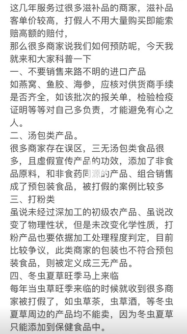 滋补品 预防职业打假人