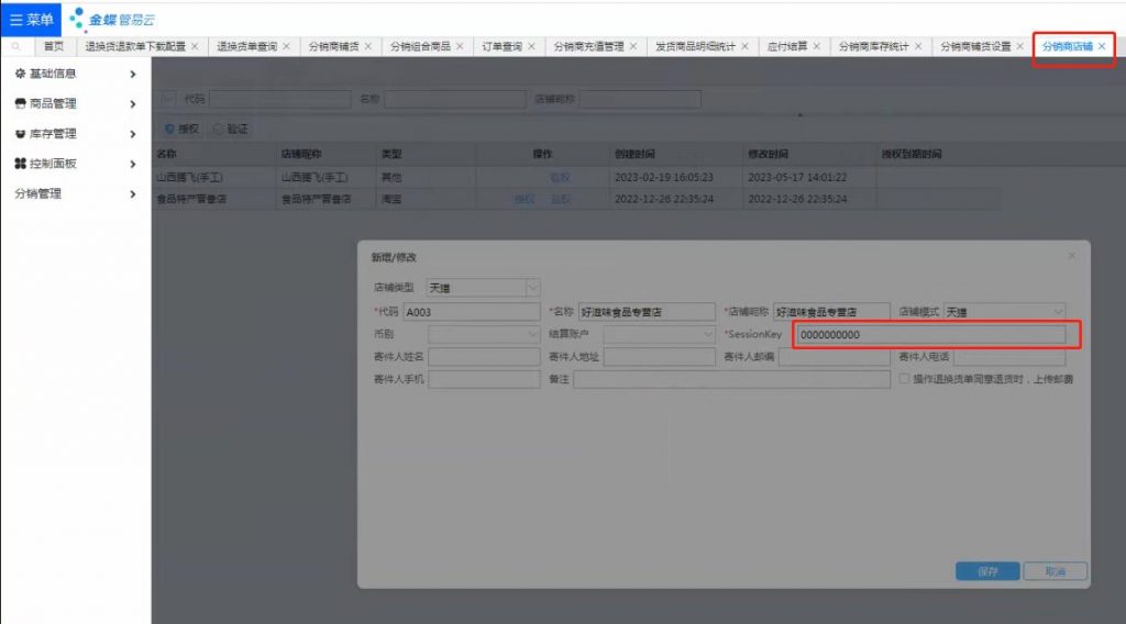 - 新建店铺 代码(自定义)、必填项写好、保存。
