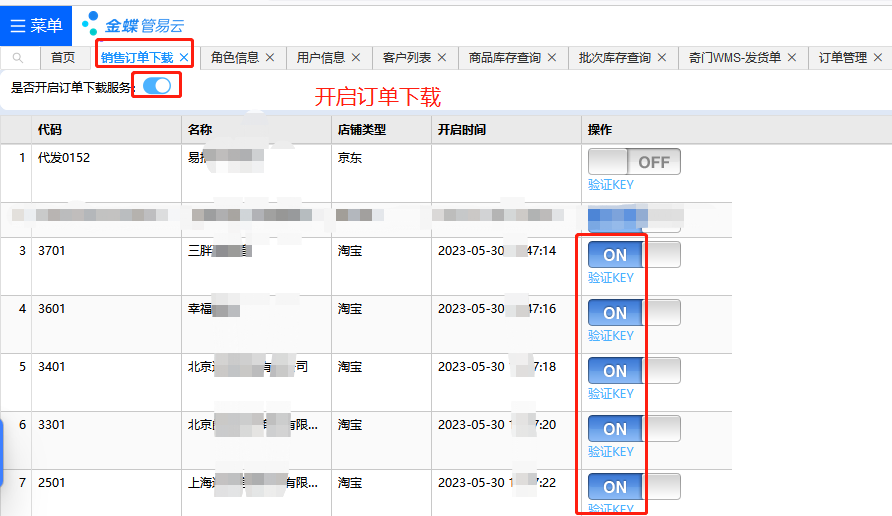 - 店铺列表 点击 授权 用对应的店铺主账号登录确认,显示授权成功。