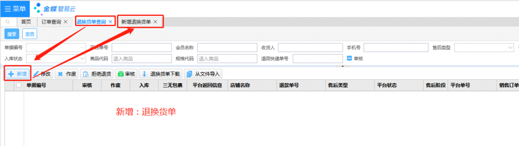 异常订单如拦截、退货、换货、制单后退款等原因订单,全部需要建退货单。
