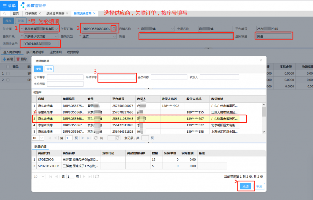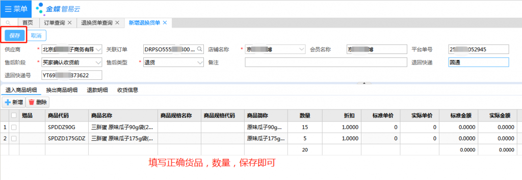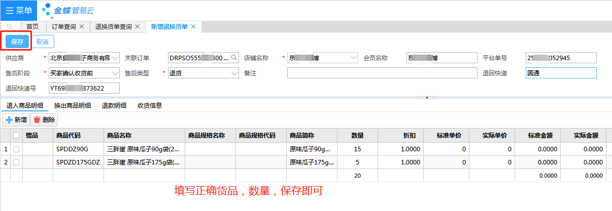 温馨提示:“退回快递”  +  退回快递号  为必填 !!!