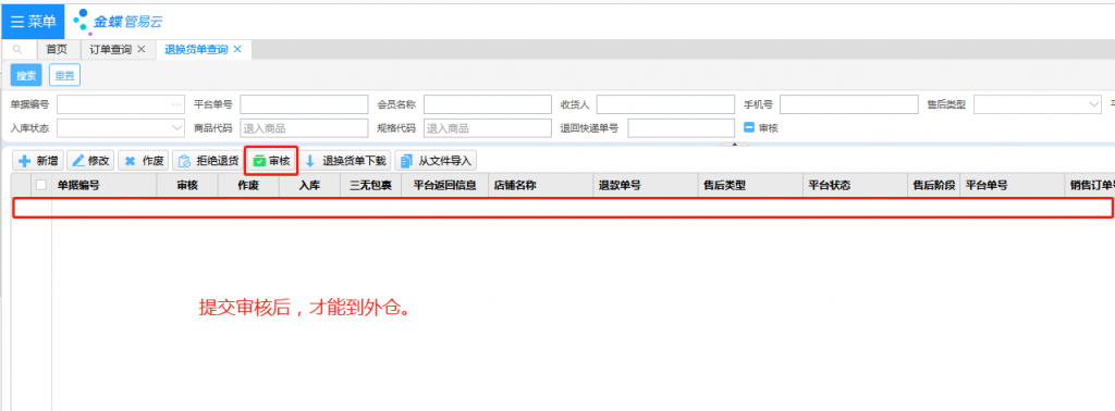 退换货单 供应商系统,反提交后外仓无订单。需要重新制单推送。