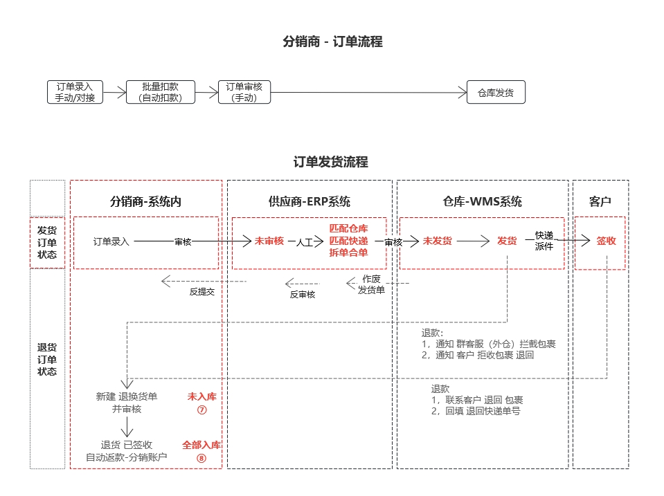 • 分销退款单 | 退货单签收后,自动生成退款单,系统审核自动退款至账户